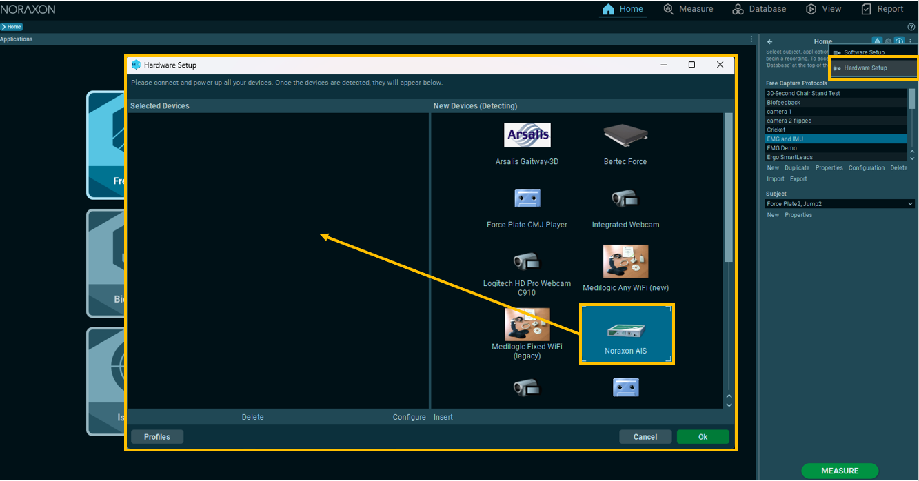 Step 3: Open the Hardware Setup in MR, insert the AIS device, and choose “Detect.”