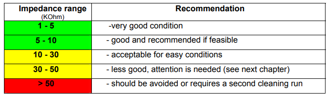 Target Range: Impedance values should ideally be below 30 kΩ.