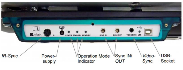 ORANGE / GREEN FLASHING—A measurement is in process and infrared synchronization signals (from other zebris devices) are received. The orange flashing signalizes that valid synchronization signals are received.