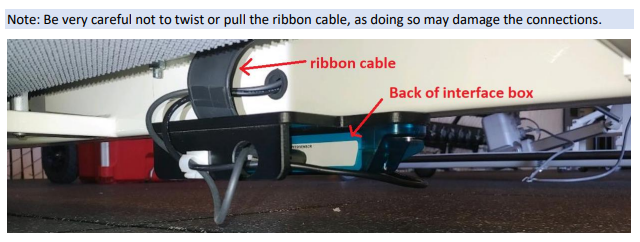 - For pressure treadmills, ensure the ribbon cable is plugged into the back of the Zebris interface box, in case it was unplugged during recent service.